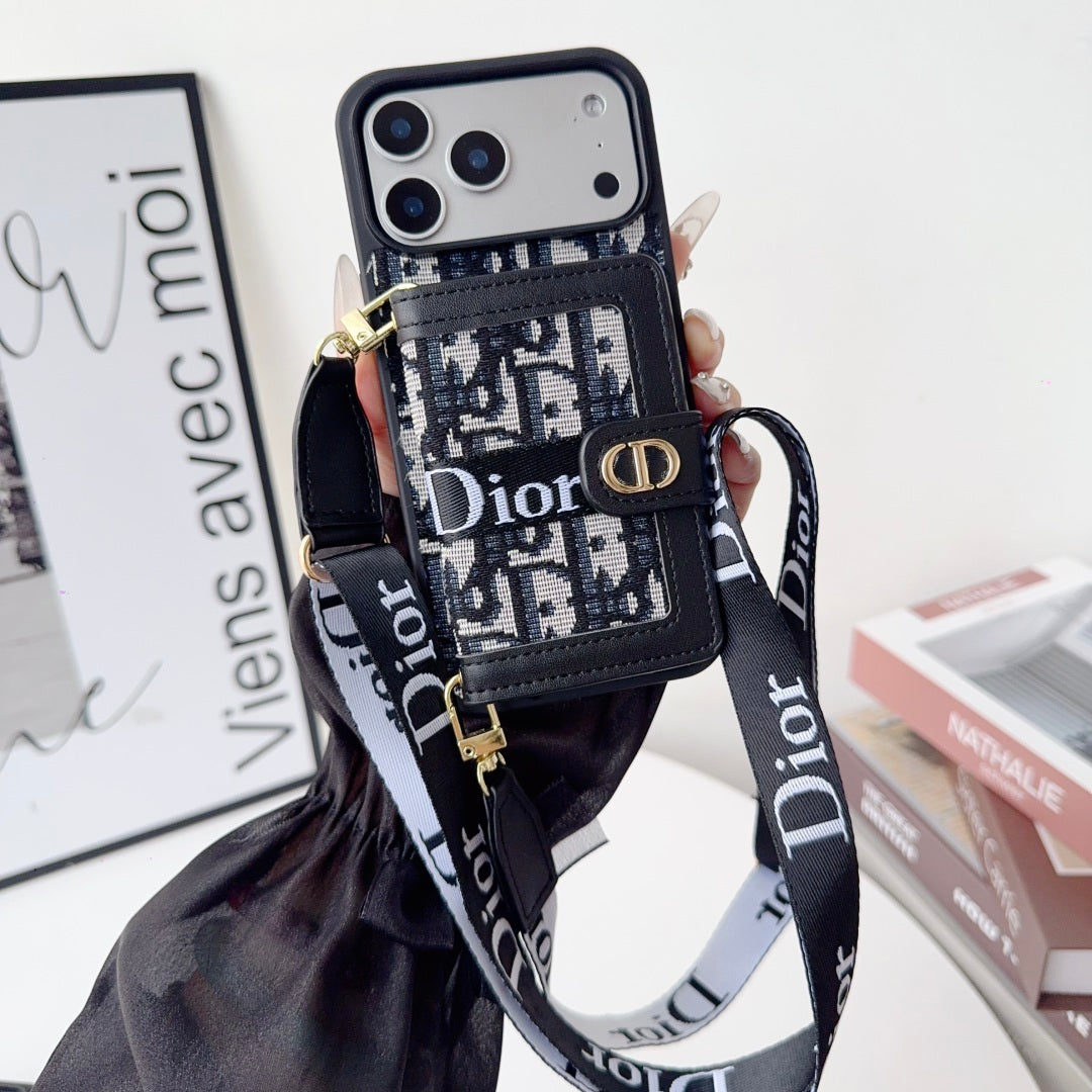 Dior Leather iPhone Case With Card Wallet And Strap For iPhone 17 / 16 / 15 / 14