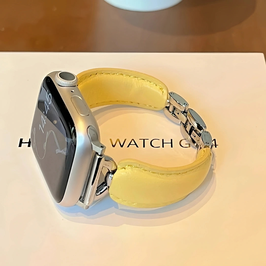 Elegant Metal Hardware: The strap is complemented by elegant metal hardware that enhances its luxurious appearance, providing a seamless and polished finish to your Apple Watch