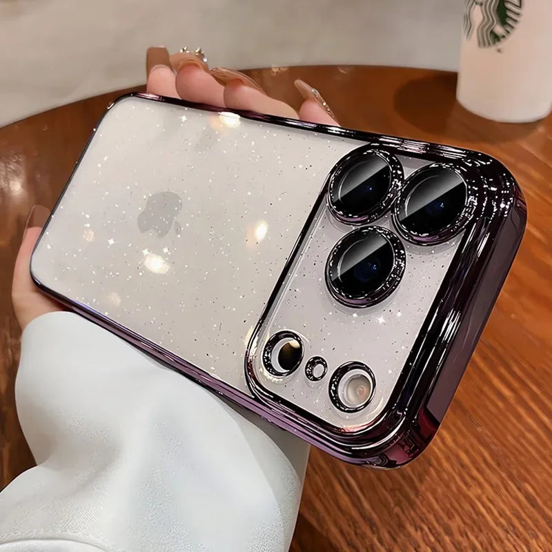 Luxury Glitter Hard Plating Clear Case for iPhone 14 15 16 17