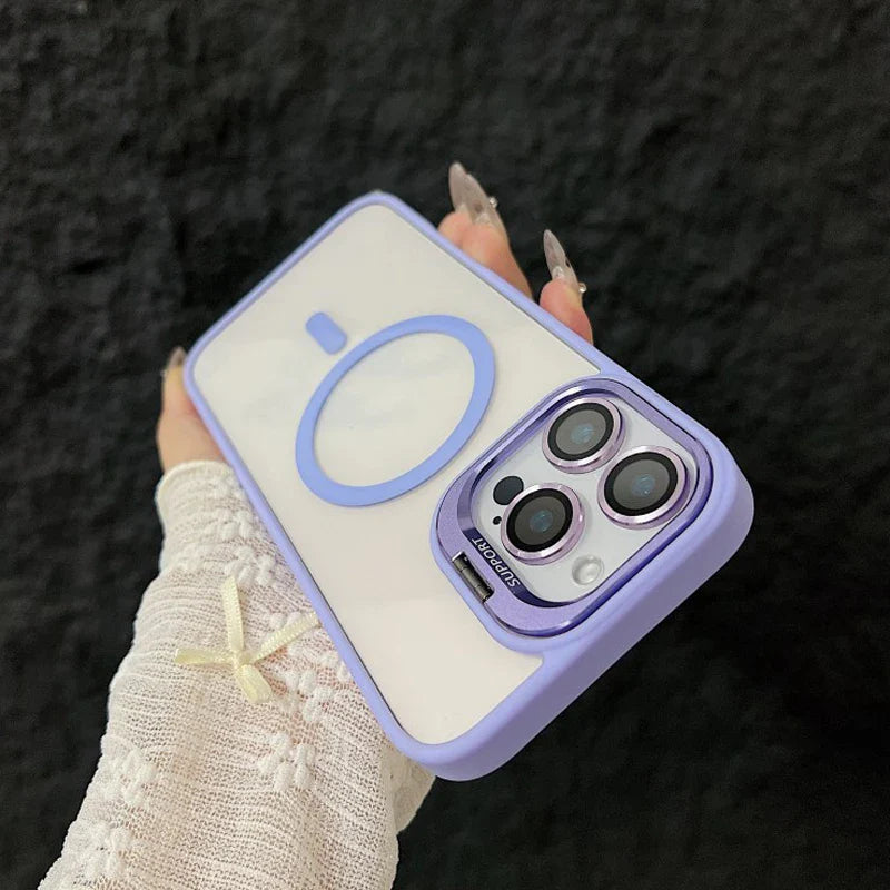 Luxury Magnetic Shockproof Phone Case For iPhone 16 15 14 Funda Stand Glass Lens Protection Back Cover