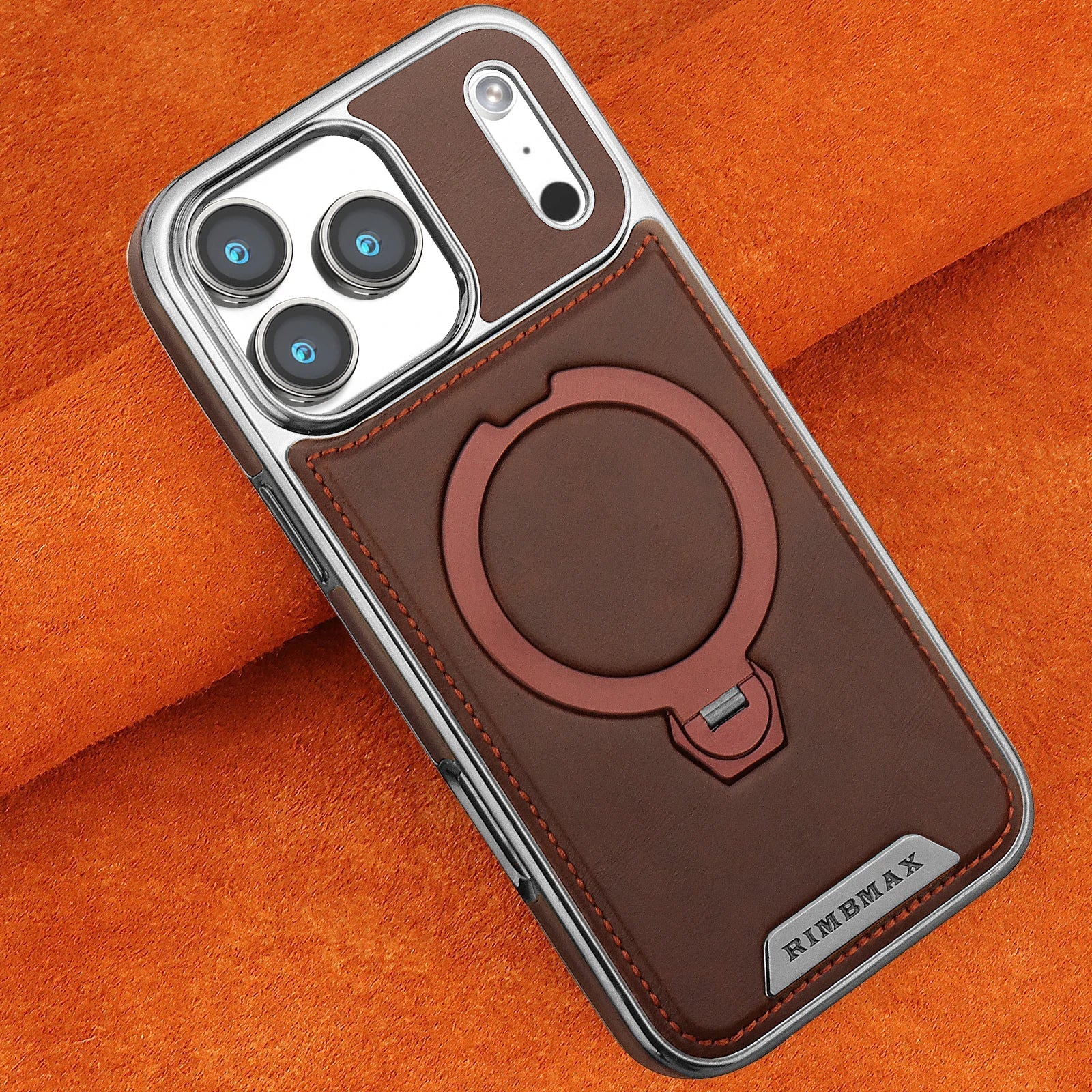 Magnetic Bracket Attraction Cowhide Leather Plating Phone Cover For iPhone 17/ 16/ 15/ 14