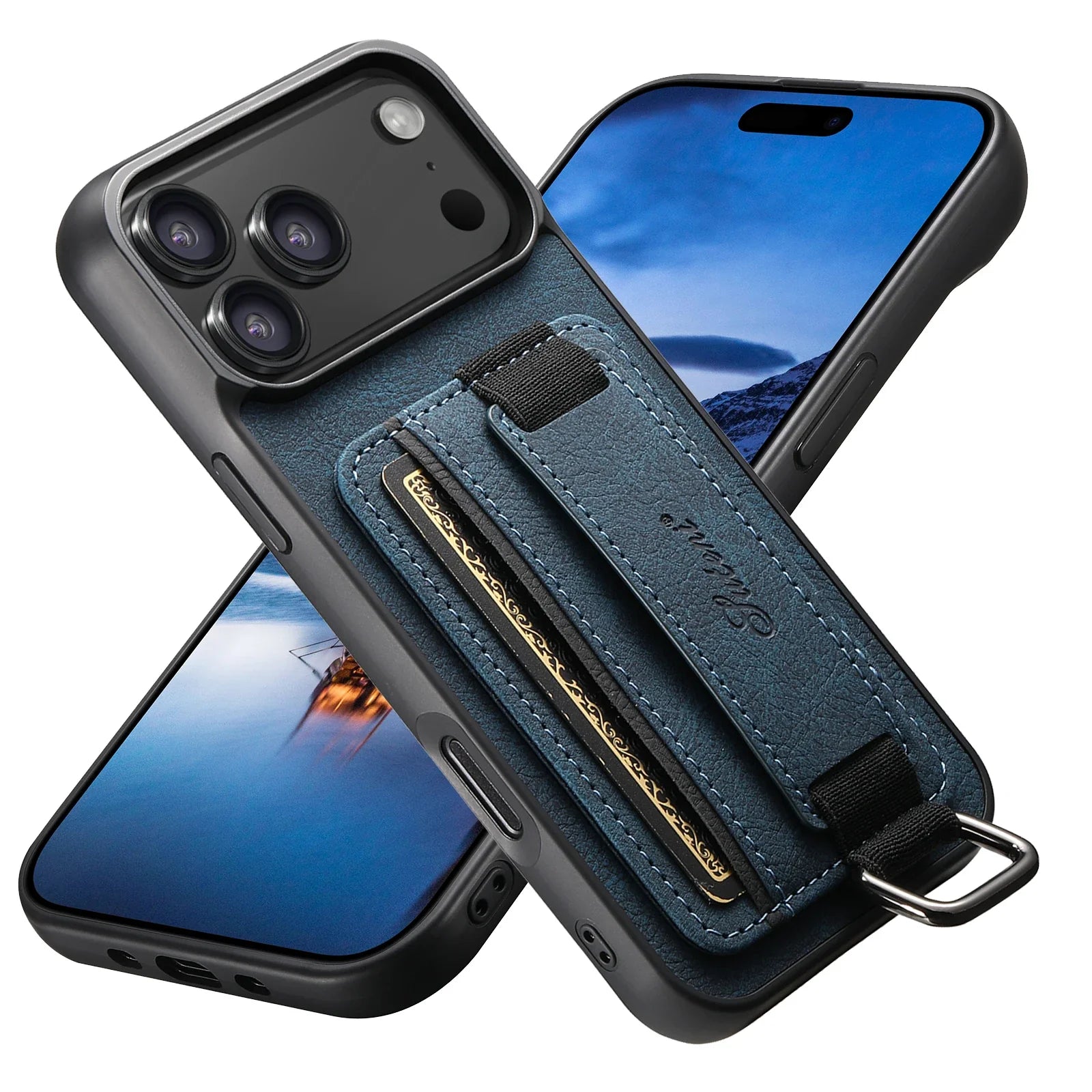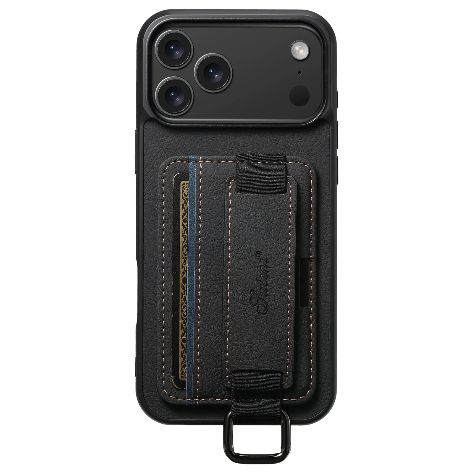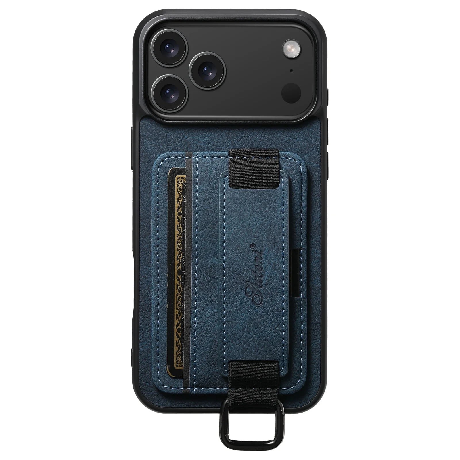 Leather Case Wrist Strap Ring Buckle Card Holder Bag Stand For iPhone 17/ 16/ 15/ 14